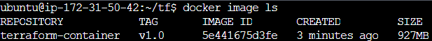 docker build -t terraform-container:v1.0Step 5: Confirm the Image was created.