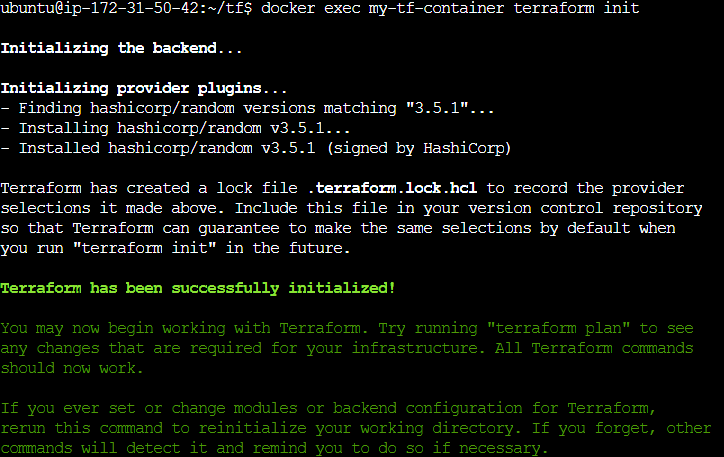 docker exec my-tf-container terraform init