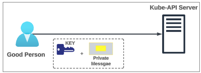In Symmetric encryption, the same secret key is used for encrypting and decrypting the messages being sent back and forth. In Figure 1 below, the Good Person encrypts their private message with a cryptographic key. The data is sent through to the server ALONG with the key. At the server's end, once the key and data are received, they will be used to decrypt the private message. Though fundamentally simple, this approach is not very effective.