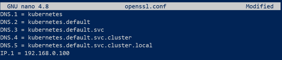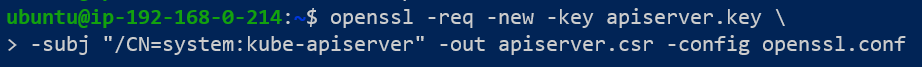 We will first generate the key as done earlier. Then we create an openssl config file that contains all the names kube-API server is referred by.