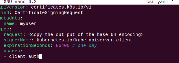 - The manifest for CertificateSigningRequest can be applied using kubectl.